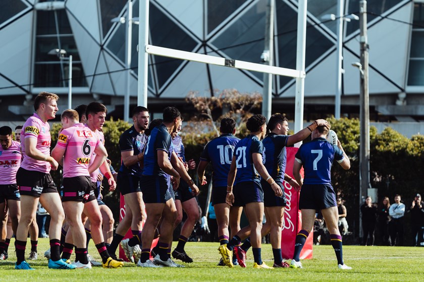 The tries continued to be scored at regular five-minute intervals, Keagan Russell-Smith barging over from close range for Storm in the 15th minute before Panthers replied with a try to Cody Lawson.