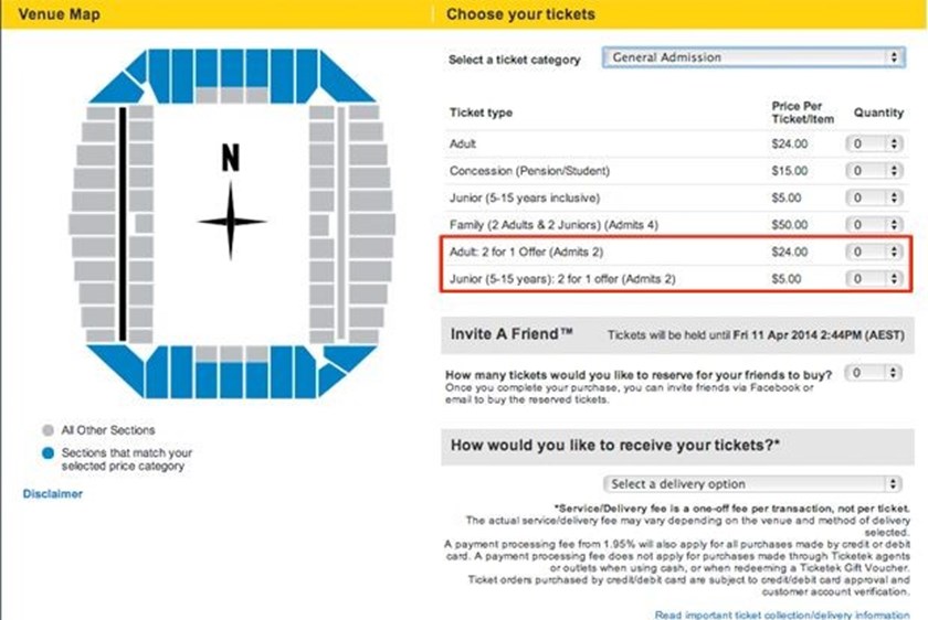 3. Proceed with Ticketek's payment and confirmation steps.
