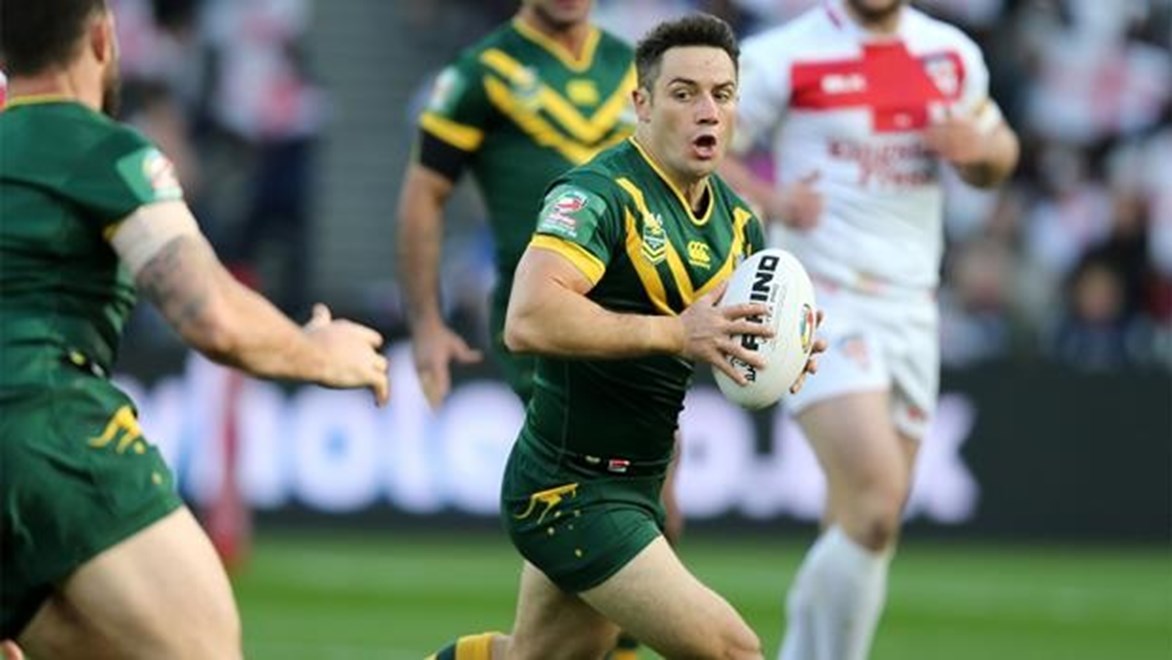 Australia equalised six minutes later through the boot of Johnathan Thurston after halves partner Cronk was on the receiving end of an ugly shot from England winger Jermaine McGillvary while kicking.