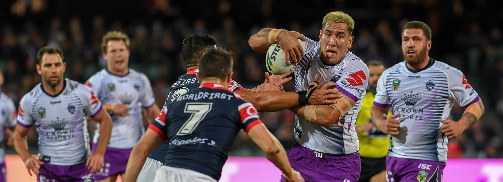 60'Â TRY! BANG! That's how you break a deadlock! NAS bulldozes through the Roosters line with raw power for the first try of the game.